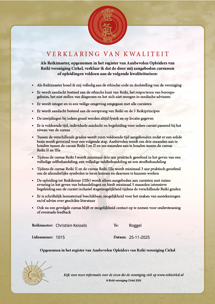 Een Reiki cursus is een liefdevol geschenk aan jezelf. Een cadeau voor het leven. De kracht van Reiki in eigen handen.